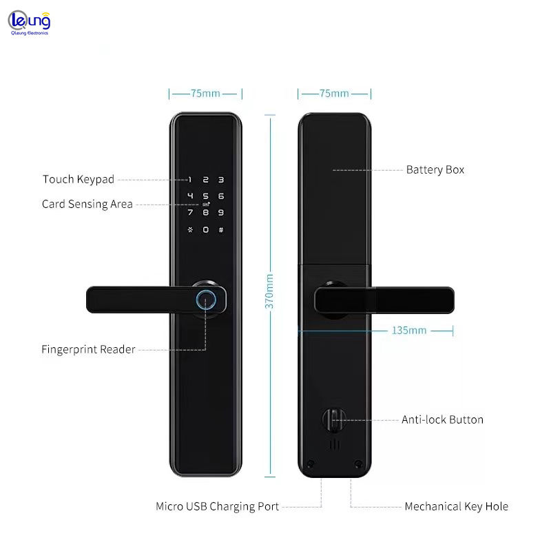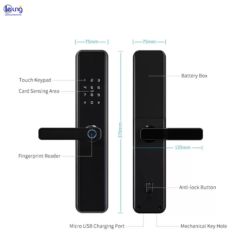 | Ontgrendelingsmethoden | Tuya WiFi-app / TTlock-app, Wachtwoord, Vingerafdruk, Kaart, Sleutel, USB-poort |