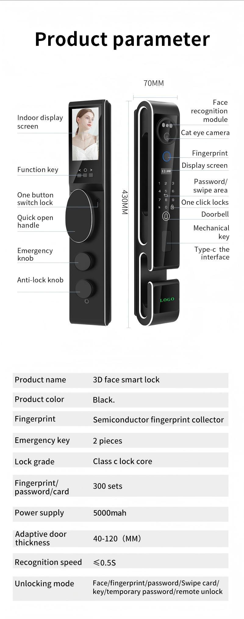 | Ontgrendelingsmethoden | TuyaAPP, wachtwoord, vingerafdruk, kaart, sleutel, videobellen |
