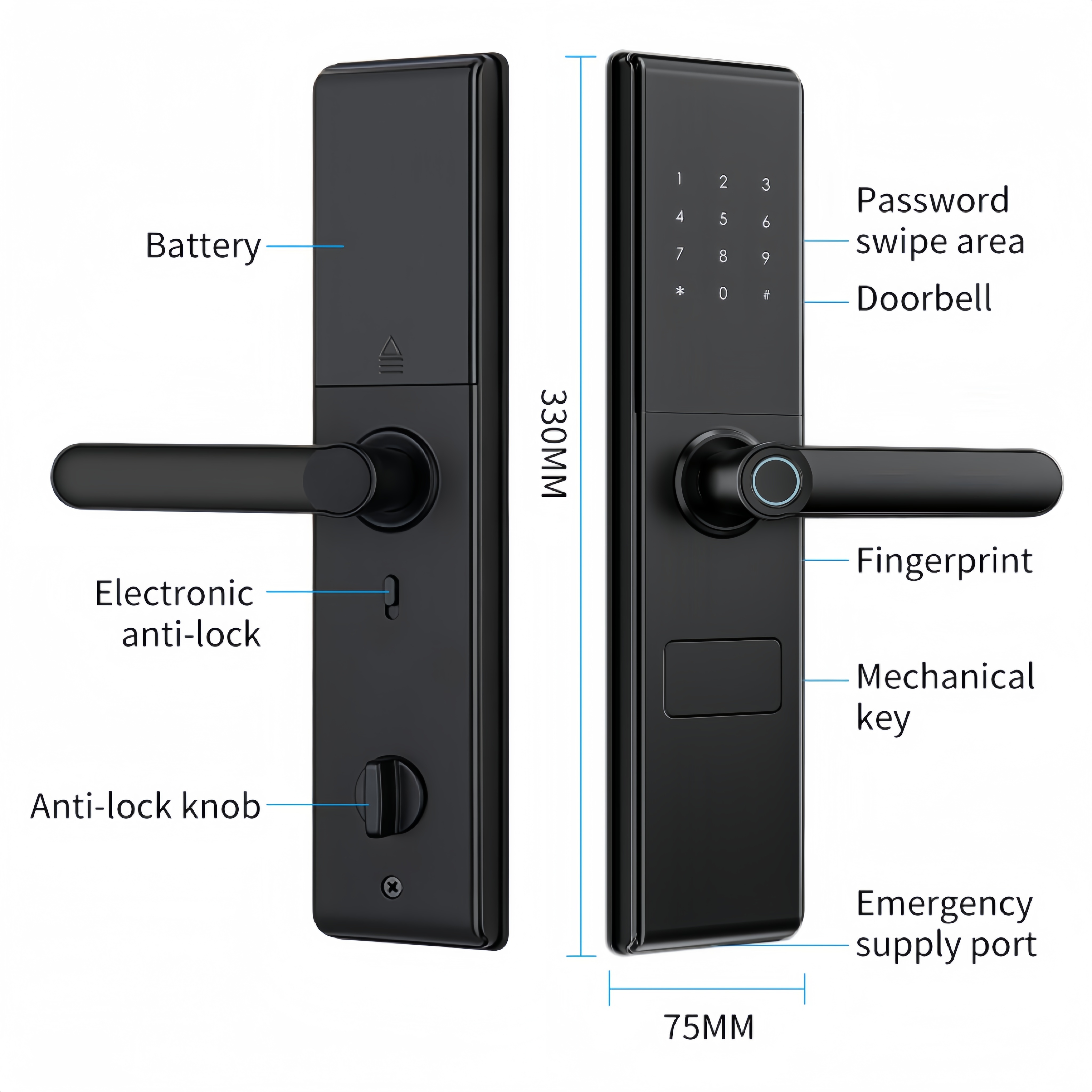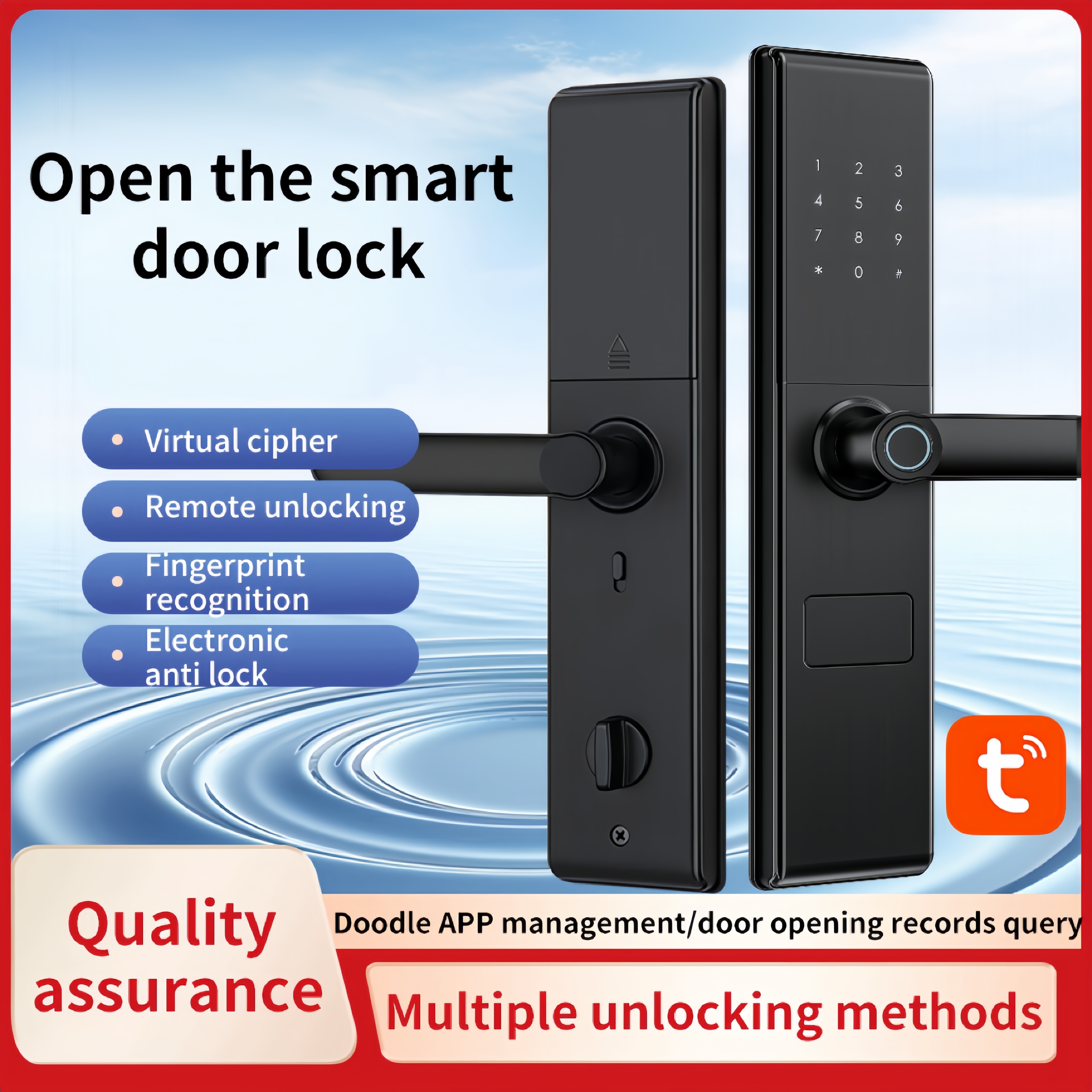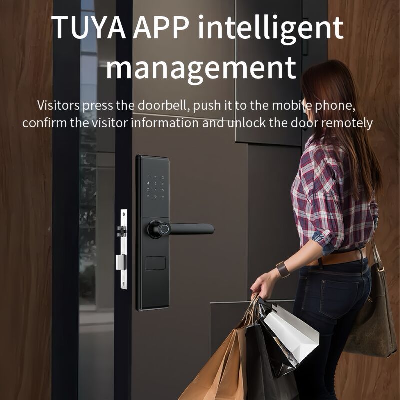 * Meerdere ontgrendelingsopties Ondersteunt vingerafdruk, wachtwoord, sleutelkaart, mechanische sleutel en Tuya App afstandsbediening.