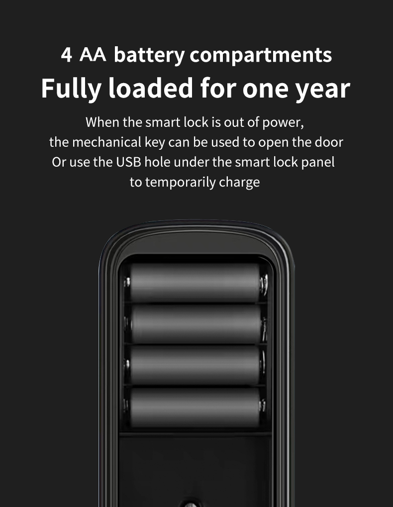 • Multiple unlocking methods: PIN code, fingerprint, access card, mobile app