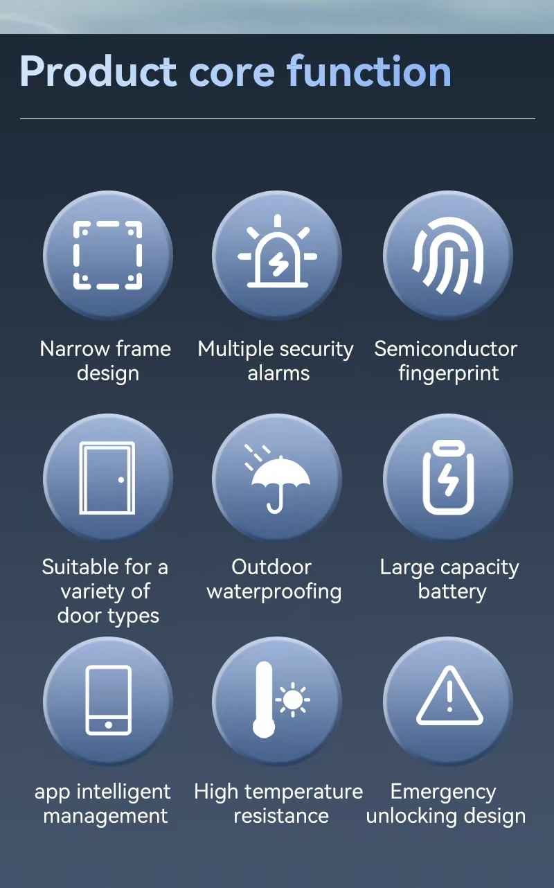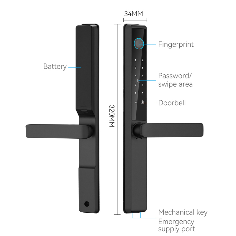 Upgrade uw huisbeveiliging en gemak met onze waterdichte IP65 digitale deurslot, geïntegreerd met Tuya en TTlock slimme ecosystemen. Dit alles-in-één slimme slot combineert robuuste bescherming, veelzijdige ontgrendelingsmethoden en intelligente connectiviteit, ideaal voor moderne woningen, kantoren en semi-buiten scenario's zoals villa's. Gemaakt van hoogwaardig geanodiseerd aluminium, beschikt het over een strak design en betrouwbare prestaties in zware omgevingen.