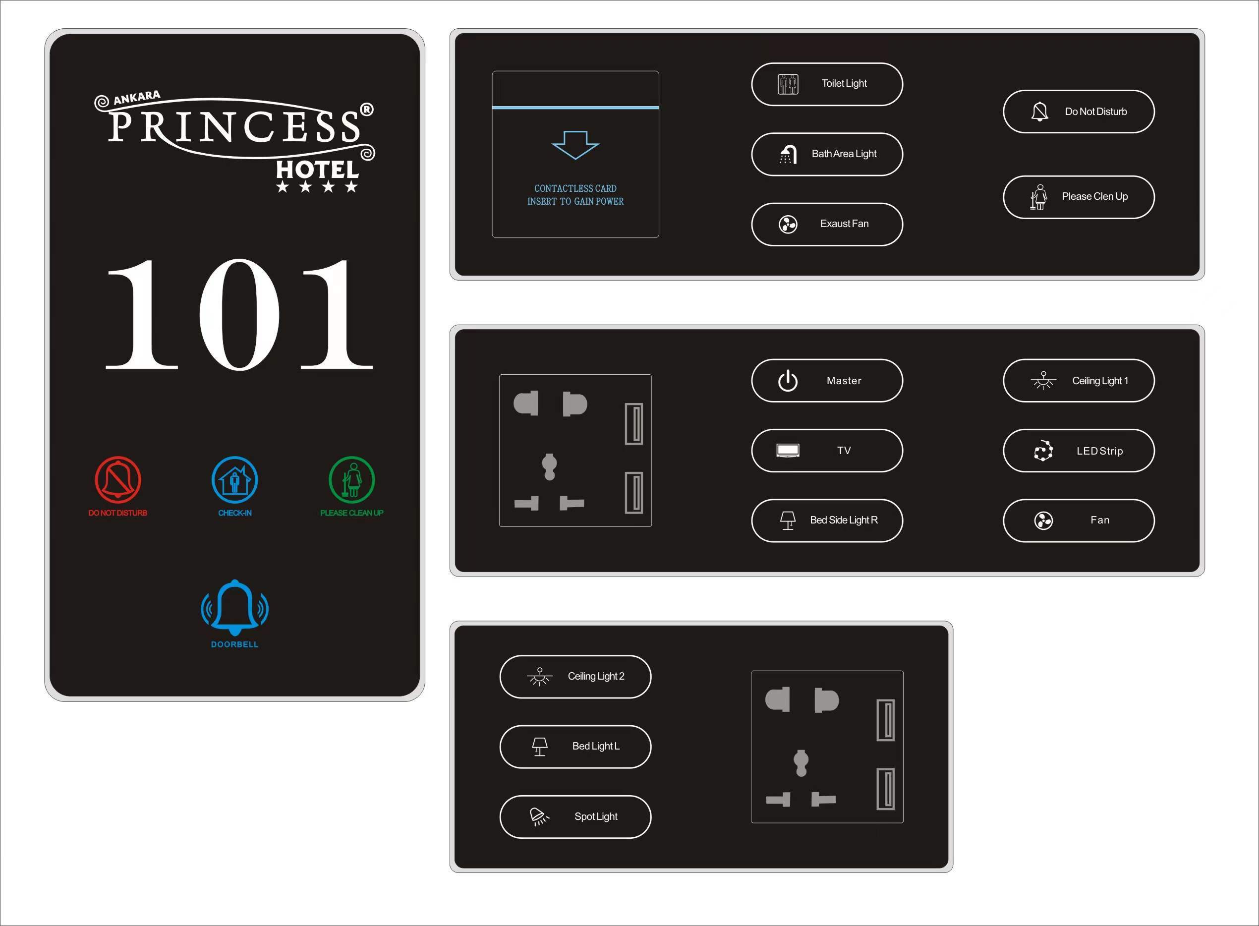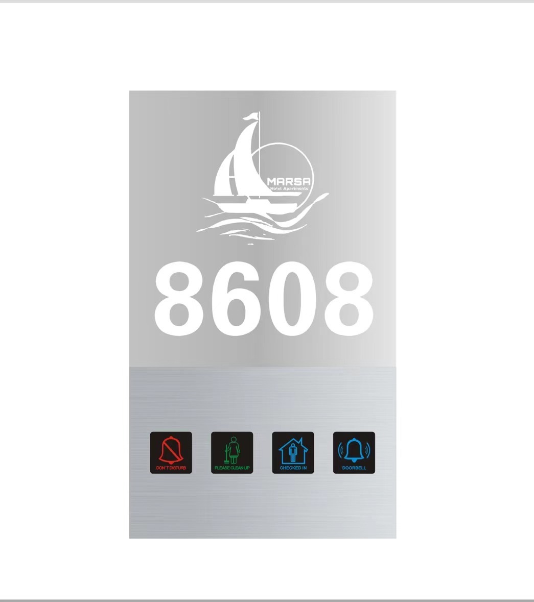 | Markeren: | hotel LED deurplaat met DND schakelaar,aangepaste acryl hotel deurplaat,touch schakelaar kamer nummer plaat |